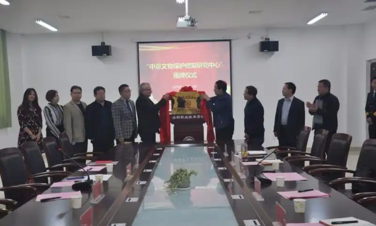 10月21日上午,我院与意大利巴勒莫美术学院合作签约暨中意文物保护修复研究中心揭牌仪式在伊滨校区隆重举行。洛阳职业技术学院院长程相朝教授、副院长韩洪涛教授、意大利巴勒莫美术学院院长Mario Zito(马里奥·齐多)先生、北京中意坤技术培训有限公司CEO王云涛博士等出席签约仪式。签约仪式由韩洪涛副院长主持。