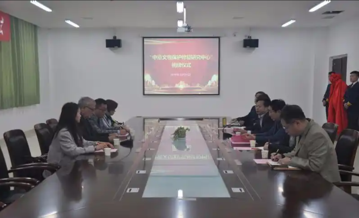随后,三方共同为“中意文物保护与修复研究中心”揭牌,并签署合作协议书。