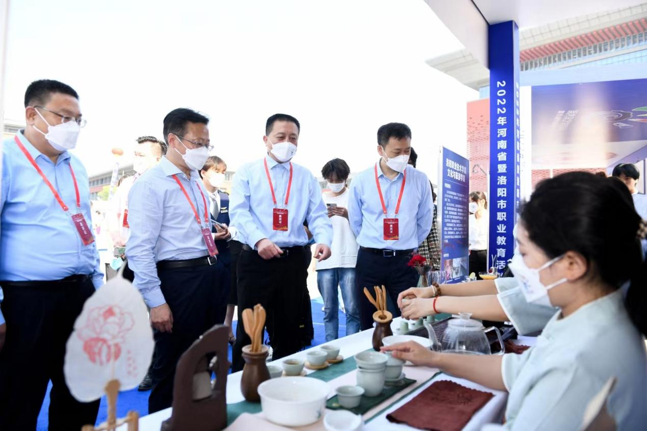 2022年河南省暨洛阳市职业教育周启动仪式在我校举办,我院教育成果展示区占据“主轴”。