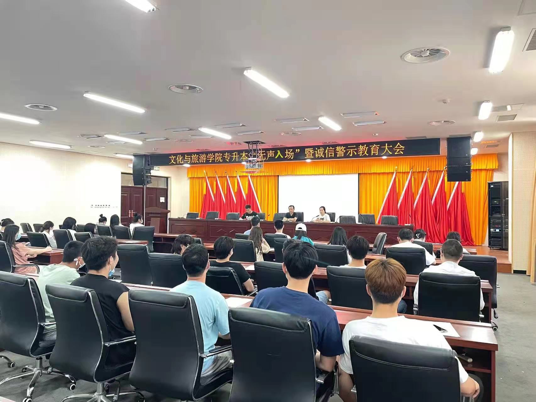 为进一步净化考试环境,防范作弊犯罪,确保考试安全,6月2日,文化与旅游学院在4-509开展“无声入场”暨诚信警示教育大会。党总支副书记兼副院长田应功,学工办主任吴昊、辅导员杜昊峰参加。大会由吴昊主持。