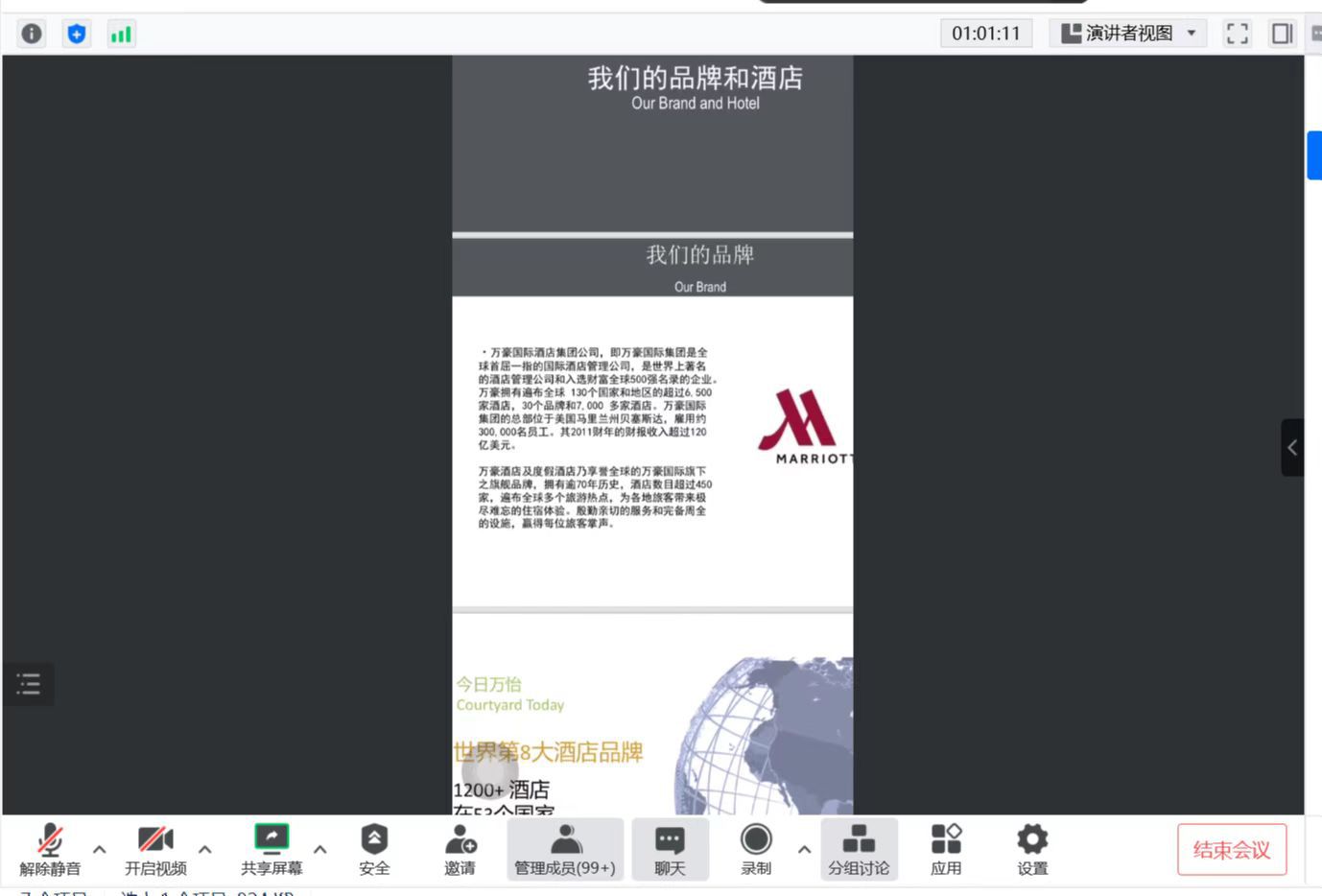 2023年1月10日晚上19:00-21:00,文化与旅游学院在腾讯会议上举办2023届毕业生第一场线上招聘会。本次网络招聘会主要邀约洛阳凯旋门酒店管理有限公司和万豪国际酒店集团公司2家用人单位进行宣讲,提供就业岗位数80余个,参与学生近300名。