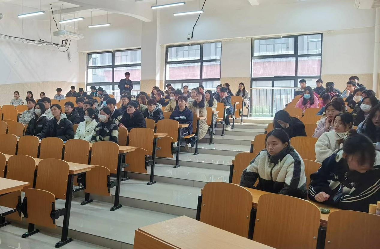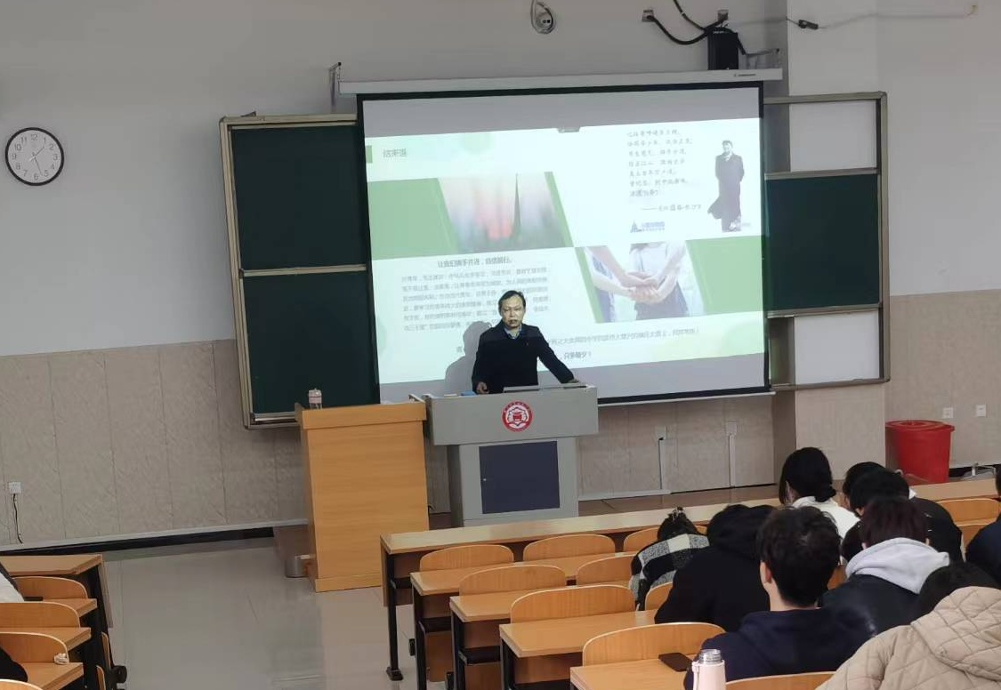 田应功以“青春践行二十大”为题,首先谈了自己对党的二十大重大意义的认识,然后讲述了自己结合二十大精神和学院工作实际确定的2023年学习与工作目标。最后,田应功对学生们提出了希望,要求大家要以党的二十大精神为指导,注重健康珍惜生命,立足新时代增强使命感,及早做好职业生涯规划,努力学习提高本领,学会做人立志成才。