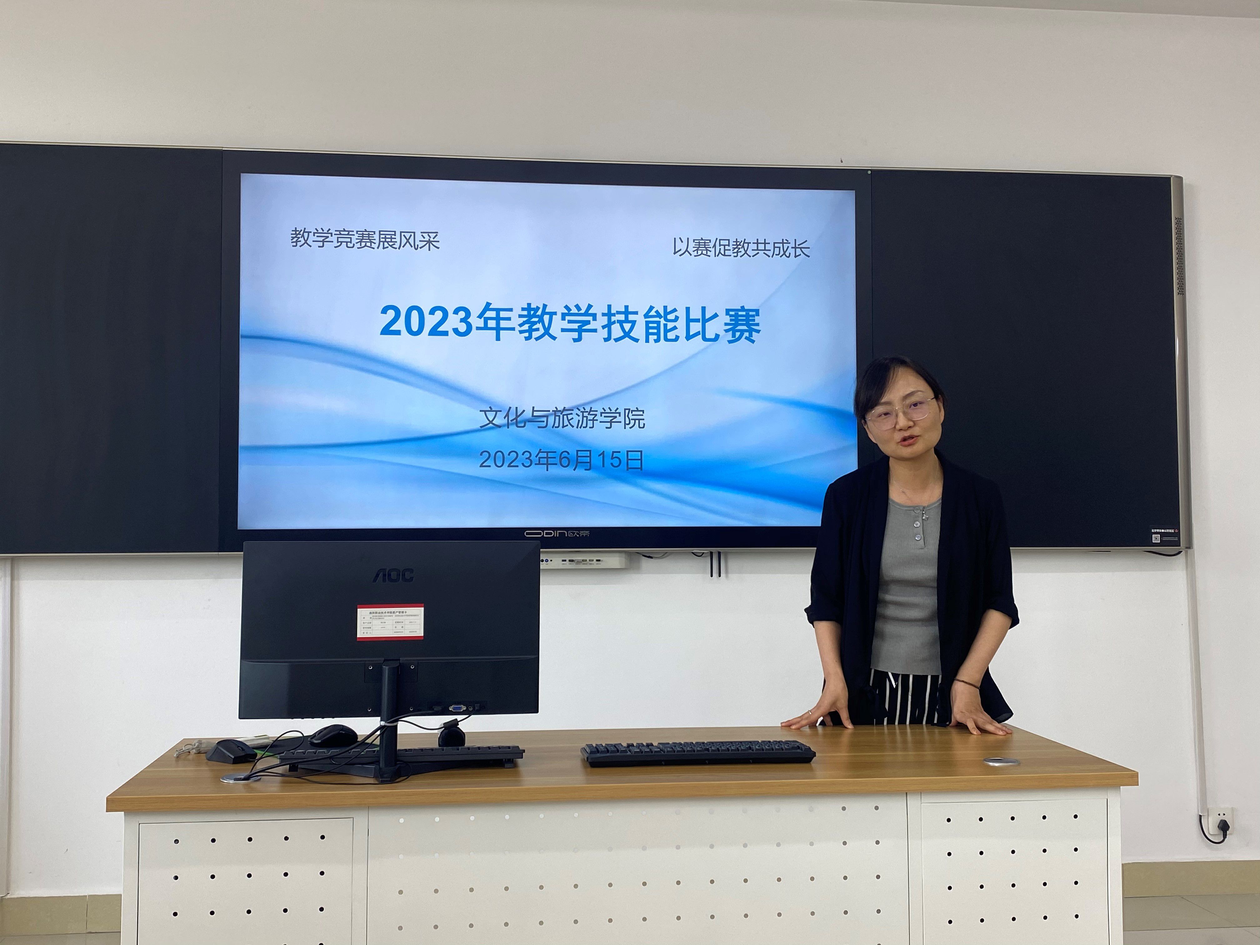 为落实立德树人根本任务,深化课堂创新教学改革,创新课堂教学模式,鼓励广大教师深入挖掘课堂创新内涵,充分发挥课程育人功能,提升教师教学创新能力,2023年6月15日下午14点,文化与旅游学院以“教学竞赛展风采,以赛促教共成长”为思路,在四号楼415智慧教室举办2023年教学技能比赛暨校级课堂创新大赛学院选拔赛,本次比赛邀请了郭又荣院长,魏秋霞和宁小丽老师担任比赛的评委,大赛由文化与旅游学院副院长刘晓伟主持。