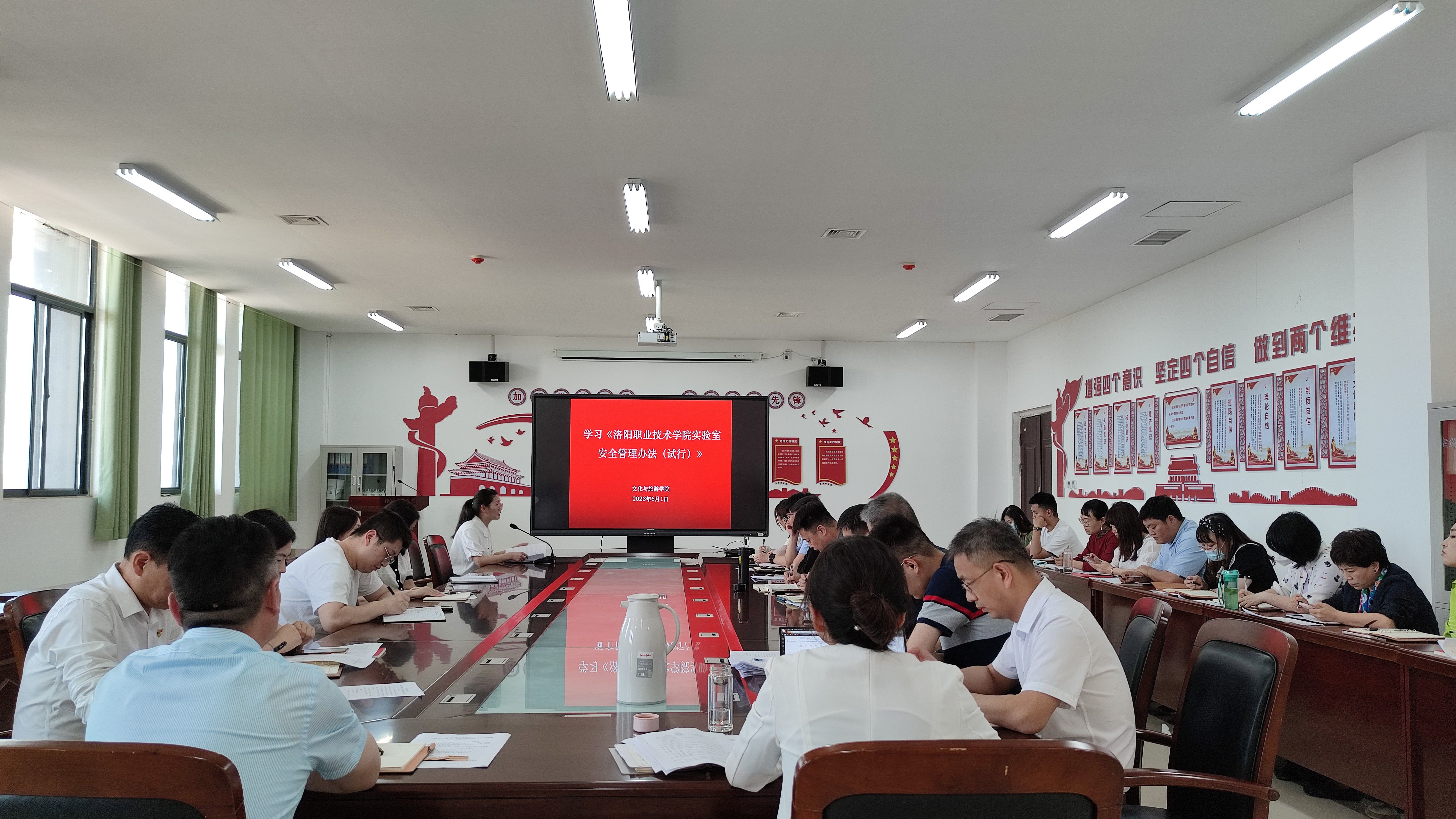 为进一步推进实验室安全管理工作,增强师生的安全意识,营造浓厚的安全氛围,6月1日下午文化与旅游学院组织全体教师开展《洛阳职业技术学院实验室安全管理办法(试行)》文件的集中学习。
