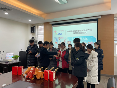 12月9日,洛阳职业技术学院文化与旅游学院党总支书记李世恩、副书记田应功、辅导员杜昊峰一行赴郑州方特参加实习生结业仪式。郑州方特人力资源中心主任姚真真参加仪式,仪式由招聘部主管张浩杰主持。