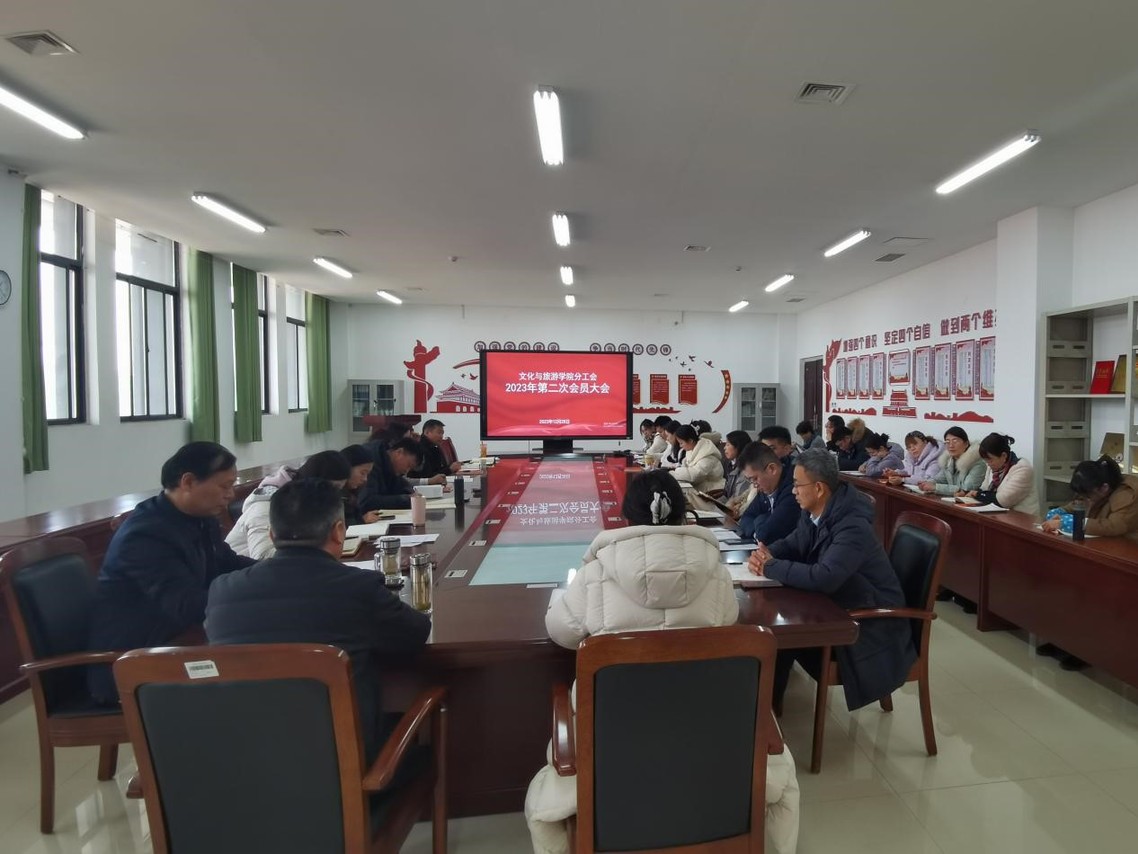 经报校工会批准,2023年12月28日中午,文化与旅游学院分工会召开2023年第二次会员大会,审议学院2023年工作报告和分工会2023年工作报告。会议由分工会主席田应功主持,党总支书记李世恩、院长郭又荣出席会议。