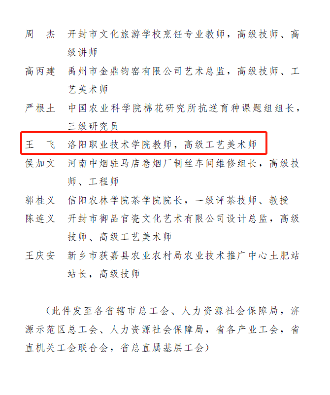 近日,从河南省人力资源和社会保障厅官网获悉,经资格审查、材料预审、网络投票、专家评审等程序,我院教师王飞获河南省总工会、河南省人力资源和社会保障厅第七届“中原大工匠”命名。
