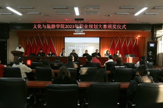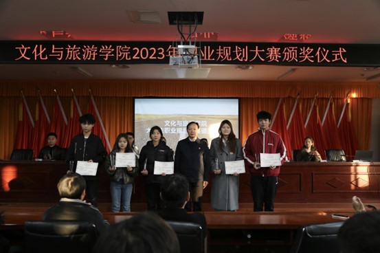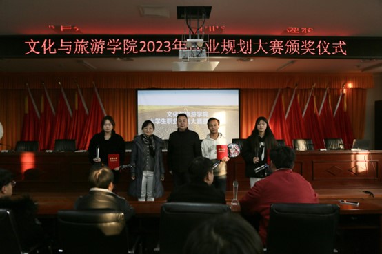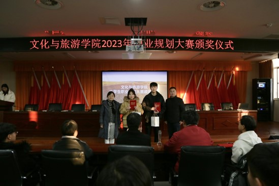 1月9日下午,文化与旅游学院大学生职业规划大赛颁奖仪式在教学楼6-509举行,党总支书记李世恩、院长郭又荣、党总支副书记田应功、学工办主任王伊晓、团总支书记吴昊以及全体专兼职辅导员出席颁奖仪式。