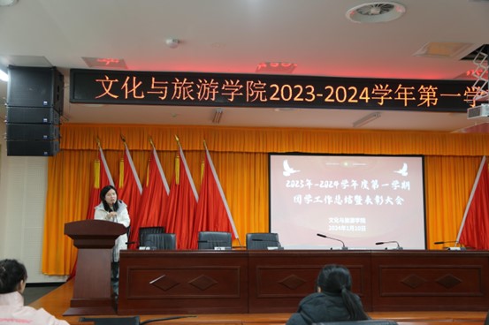 1月10日下午,洛职文旅院团总支在6-509报告厅召开2023-2024学年第一学期团学工作总结暨表彰大会。会议由学生会主席团成员郭瑞主持,团总支书记、副书记、各委员及学生会全体成员参加。
