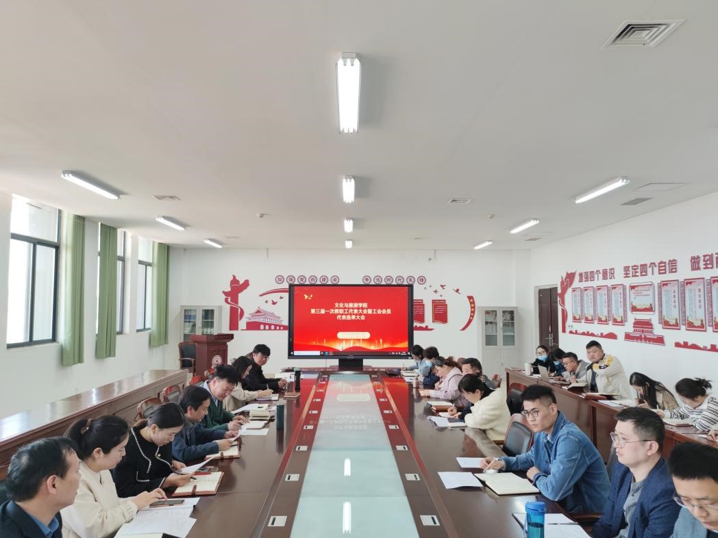 3月21日,文化与旅游学院在6-513召开第三届一次教职工代表大会暨工会会员代表选举大会。党总支书记李世恩、院长郭又荣出席会议。会议由党总支副书记、分工会主席田应功主持。