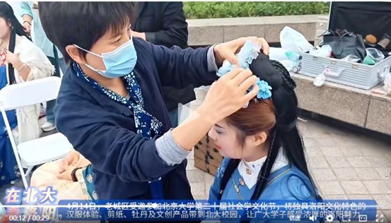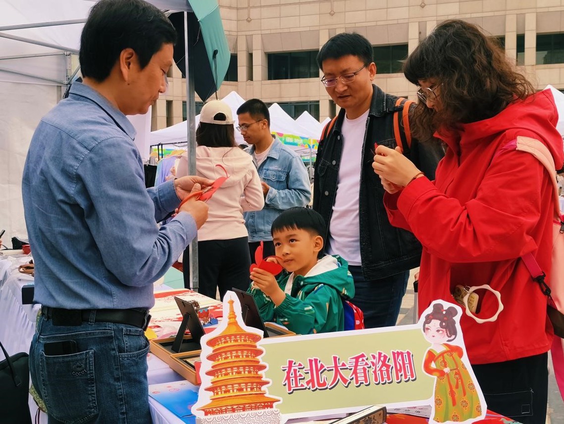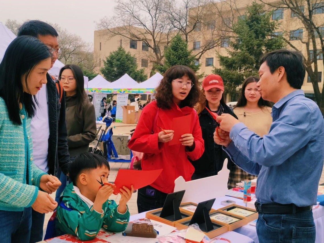 4月14日,北京大学第20届社会学文化节 “田野与乡野活动”主题活动在北大百周年纪念讲堂前广场圆满落幕,我校团委应邀参加了此次盛会。中原大工匠、文化与旅游学院王飞与宁晓丽两位老师带领汉服社学生作为我校师生代表与北大学子交流非遗剪纸技艺和汉服文化,共同探寻中华优秀传统文化的魅力。