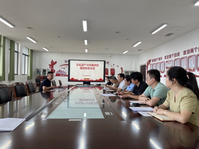 6月21日,文化遗产与传播学院党总支书记李世恩在6-513对学院副科级以上干部、项目负责人、新入职人员进行廉政集体谈话。