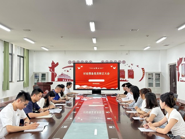 学生党支部党员分别介绍预备党员预备期间的政治觉悟、工作表现、思想品质、学习等情况,充分讨论并发表意见。学生党支部书记王伊晓代表学生党支部委员会报告周红旗等14名同志在预备期间的教育考察情况,提出同意转为正式党员的意见并提交支部党员大会讨论通过。经党支部正式党员讨论及无记名投票表决,一致同意与会的14名预备党员转为正式党员。