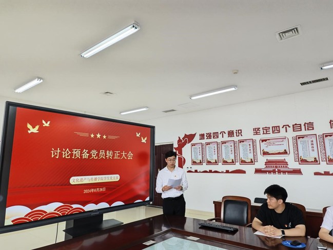 6月26日,文化遗产与传播学院学生党支部在6-513会议室召开2021级预备党员转正大会,讨论预备党员周红旗等14名同志的转正问题。会议由文化遗产与传播学院学生党支部宣传委员王丹主持,全体党员以及预备党员参加。