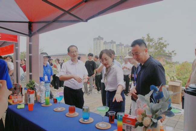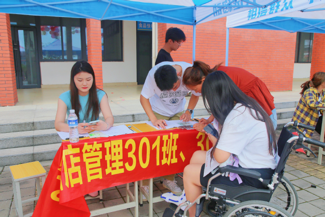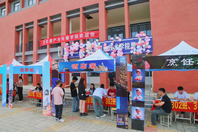 迎新报到工作现场引导标识鲜明醒目,各项报到流程井然有序。为提升接待工作质量,学院在接待处分别设置 文传休憩站、颜起绿径、高铁站 、旅游城、酒店家、烹饪坊、文创苑、传策舍等专业报到点及趣味闯关关卡,其中文传休憩站展出了酒店管理专业学生制作的特色饮品,供报到师生休息品尝,同时我院还设置独具专业特色的大型花艺展示作品,吸引了众多师生打卡欣赏。