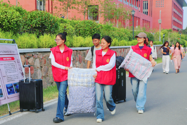 院长郭又荣、党总支书记李世恩现场向校领导汇报了文传学院迎新准备工作情况及新生报到情况。