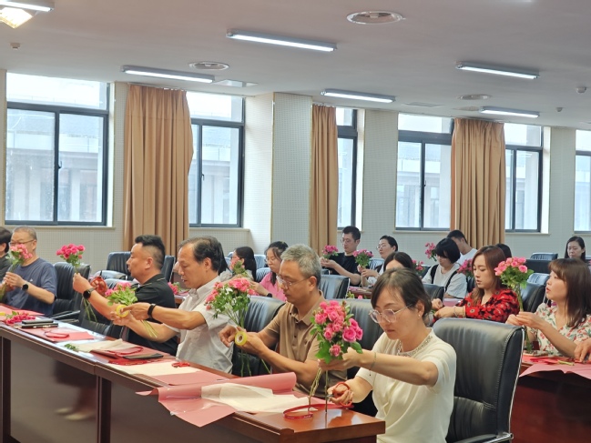 整个活动期间,老师们欢声笑语,热情洋溢,在两位老师的教授下,通过自己灵巧的手,制作出来一束束美丽的花束,共同庆祝自己的节日!