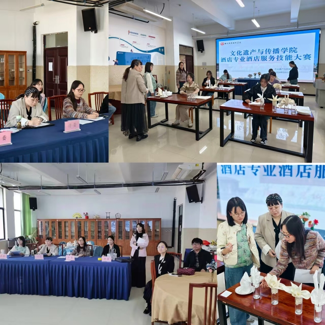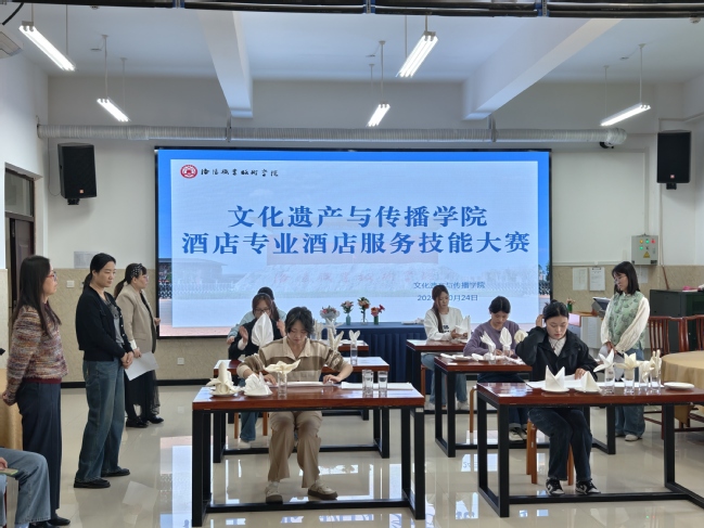 10月24日,文传学院酒店管理与数字化运营专业举办“妙手生花,创意无限”酒店服务技能大赛。本次大赛面向酒店管理与数字化运营专业大一、大二学生,共有61人报名参赛,经过初赛复赛,35人进入决赛。比赛在文传学院6-417中餐服务实训室进行,党总支书记李世恩、院长郭又荣、副院长刘晓伟出席比赛。