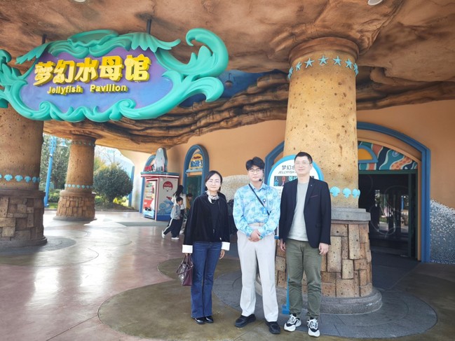 随后,郭又荣一行来到郑州海昌海洋公园。在这里,实习生们正忙碌地穿梭于各个场馆之间,为游客们提供热情周到的服务。郭又荣与同学们交流时强调,海洋公园的实习经历将为大家打开一扇了解海洋文化和旅游产业的窗户,希望同学们能够用心感受、用心学习,为今后的职业发展奠定坚实的基础。