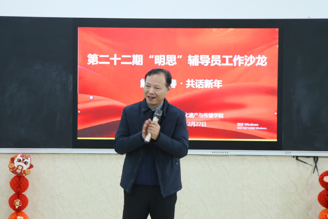 活动伊始,张卫国发表致辞,他以真挚的情感回顾自己多年的教育教学历程,分享育人宝贵经验。他表示,此次沙龙是搭建交流互鉴桥梁的关键平台,希望每一位辅导员们都能积极踊跃地参与进来,深入分享在学生思想引领和班级管理等工作中的点滴进步与成绩,相互借鉴,并以此为重要契机,有力推动整个学生工作体系稳健前行,进而为培养德智体美劳全面发展的新时代优秀人才筑牢坚实根基,为教育事业的蓬勃发展书写崭新篇章。