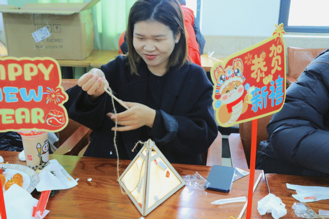 最后,在“好运连连 手工制作灯笼”趣味互动环节中,辅导员们亲手制作灯笼,寓意新年好运。在活动尾声,李少沛对2025年工作提出指导建议,鼓励大家携手共进,共同推动学生工作再上新台阶。