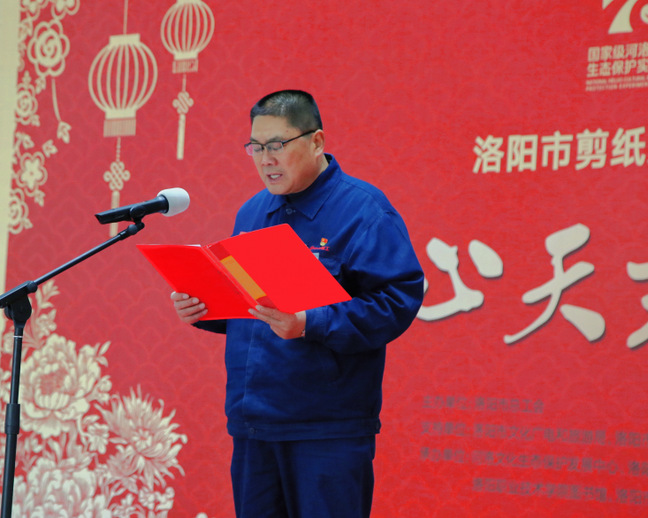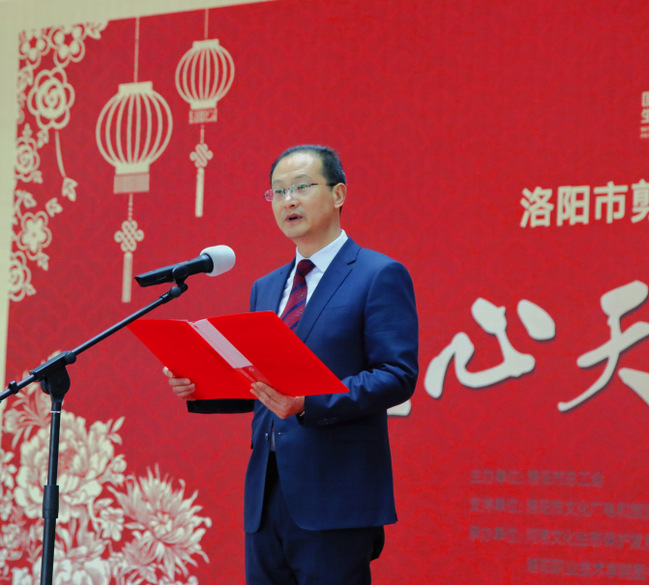 李保安在致辞中表示,近年来,洛阳职业技术学院坚持守正创新,积极保护与传承非物质文化遗产,学校以“弘扬中国传统文化,传承剪纸非遗,助力乡村振兴”为宗旨,持续开展非遗剪纸进学校、进社区、进乡村、进机关、进企业活动。此次剪纸艺术展在洛阳职业技术学院举办,既是对学校长期探索传统文化、积极搭建非遗传承平台的充分肯定,也是对学校做好非遗人才培养工作的鞭策和鼓舞。希望通过此次艺术展,能够发掘一批青年非遗创意人才、搭建一个非遗交流平台、挖掘更多厚重的非物质文化遗产,切实推动洛阳非遗在新时代焕发出新的光彩。