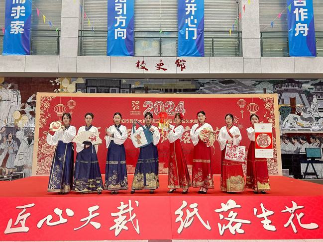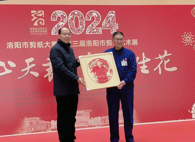 12月31日,“匠心天裁 纸落生花”2024年洛阳市剪纸大赛暨第三届洛阳市剪纸艺术展在洛阳职业技术学院开幕。洛阳市委教育工委专职副书记张战杰,洛阳市文旅局副局长潘文武,洛阳市总工会四级调研员芮广杰,大国工匠杨金安,洛阳职业技术学院校长李保安、党委副书记任晓平、副校长张卫国出席开幕式。
