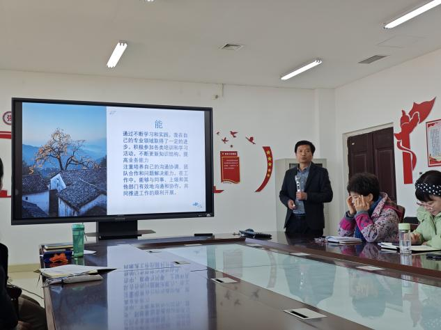 与会教师立足工作岗位,围绕“德、能、勤、绩、廉”,依次进行述职报告。任课教师围绕落实立德树人根本任务,从教育教学、科研创新、课程思政、学生指导等方面进行了工作回顾,对下一年度工作设想和目标进行了展望。辅导员从思想政治教育、学生日常管理、创新工作、所负责的专项任务以及参与学校、学院重要工作、重大活动等方面进行总结,全方位多角度地展现了扎实的成绩。同时,针对工作中存在的问题与不足进行分析,积极谋划下一年的计划与发展方向。述职结束后,全体教职工进行了现场测评。