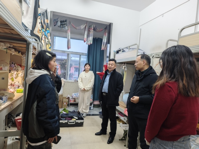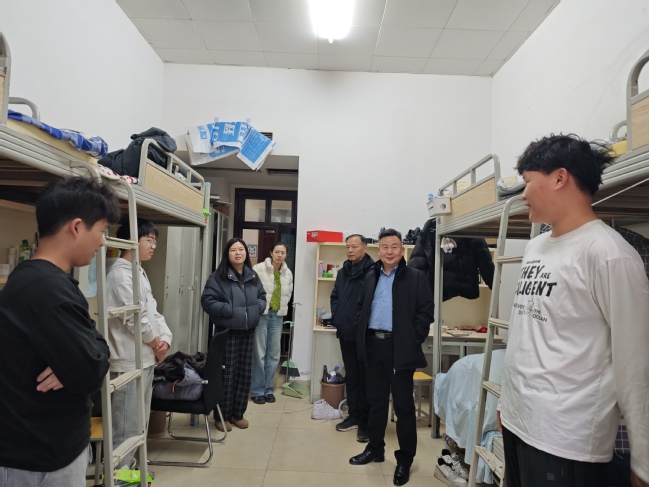 走进学生宿舍,李世恩与同学们拉起家长,向大家了解寒假在家与返校的相关情况,询问是否有困难。学生们热情地向李世恩一行报告自己寒假的情况,表示一切都很顺利,没有困难。李世恩一行查看了各宿舍的用电情况,叮嘱学生一定要注意用电安全,防范火灾,一旦发现隐患要及时向辅导员和公寓管理员报告。最后,李世恩要求同学们要尽快调整好状态,以饱满的精神状态投入到新学期的学习生活中。