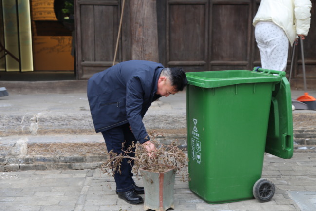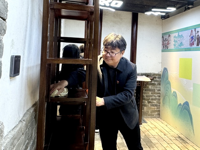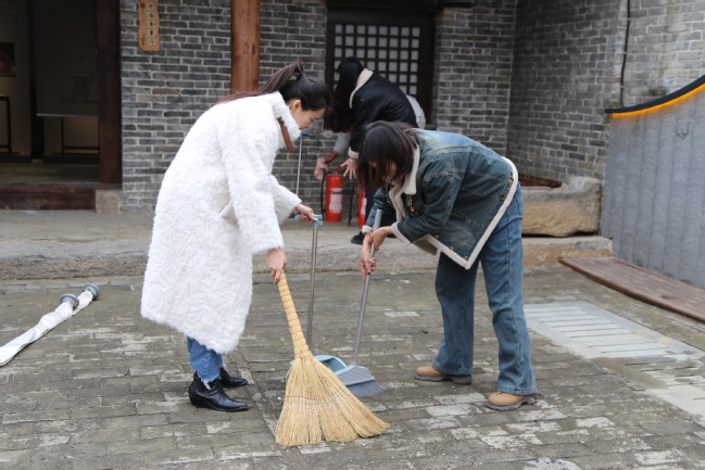 在豫见•河洛印象文化馆,党员们按照支部书记分配的任务,迅速开展起馆内的清洁打扫工作,打扫地面,擦拭桌椅、展台、展架、茶具,整理文创展品、绿植。经过2个多小时的认真打扫,将文化馆内在长假中的积尘一扫而空,食事厅、茶韵厅、非遗厅、文创厅等展现出整洁的新面貌,文化馆重新恢复了浓郁的文化的氛围。