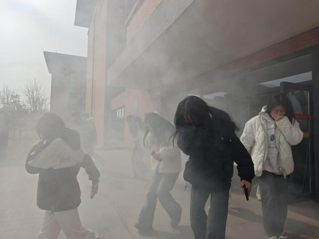 针对校园和日常生活常见消防隐患,梅霖教员详细介绍了灭火器的正确使用方法。讲座结束后,还专门面向学生在17号宿舍楼开展了现场火灾逃生演示,增强了师生们的实操能力和应急逃生技能。