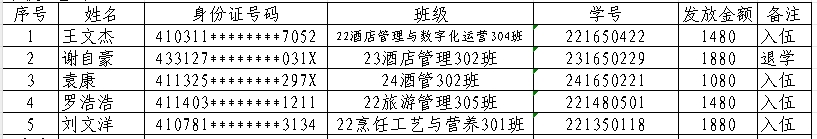 2024-2025学年春季学期国家助学金3月调减名单(调减)