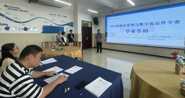 5月9日,文化遗产与传播学院2025届毕业论文答辩会在6号楼实训室、烹饪实训基地顺利进行。本次答辩涵盖学院旅游管理、酒店管理与数字化运营、文化创意与策划、餐饮管理、高速铁路客运服务、烹饪工艺与营养6个专业2025届毕业生。院长郭又荣、副院长刘晓伟一行到各答辩现场进行指导。
