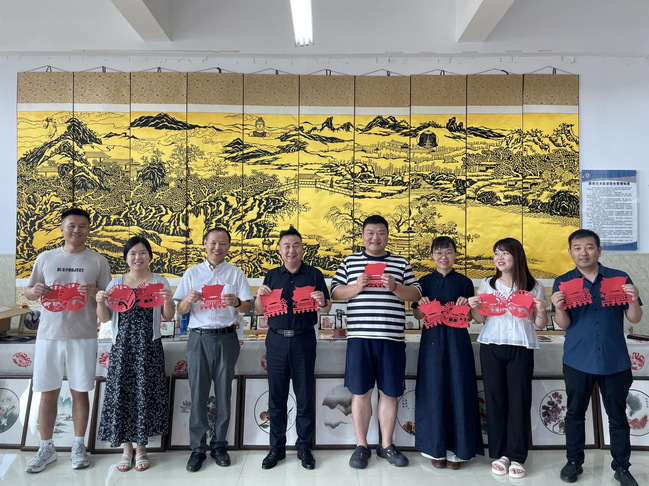 党课结束后,全体党员到剪纸技艺实训室共同开展了红色文创作品制作与展示活动。