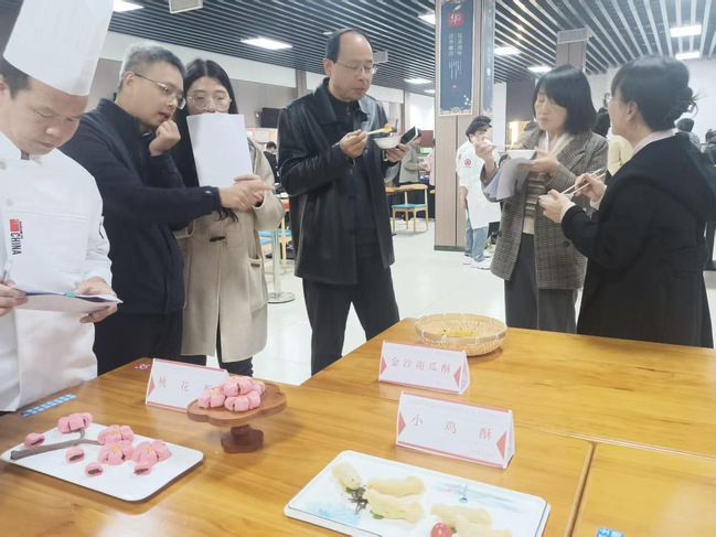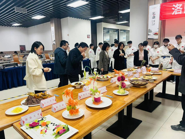 11月6日上午,烹饪工艺与营养专业与洛阳市凯旋门餐饮管理有限公司在产教融合实训基地成功举办校级学生技能竞赛。校党委副书记任晓平,课程中心主任刘晨艳及副主任童志杰、书记李世恩、院长郭又荣带领校企教师到场指导。