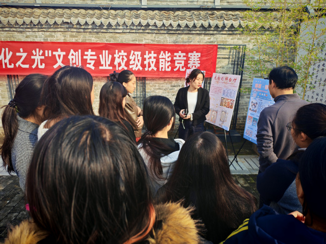 11月13日,洛阳职业技术学院“承非物质文化遗产之脉,扬中华传统文化之光”文创专业校级技能大赛展在豫见·河洛印象文化馆隆重开幕。副书记田应功莅临比赛现场进行指导。