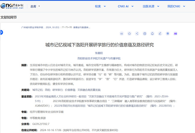 4.张晨阳:城市记忆视域下洛阳开展研学旅行的价值意蕴及路径研究