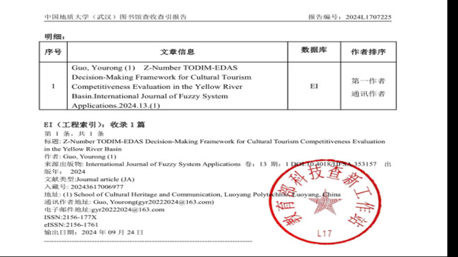 8.郭又荣:Z-Number TODIM-EDAS Decision-MakingFramework for Cultural Tourism Competitiveness Evaluationin the Yellow River Basin