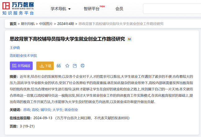 7.王伊晓:思政背景下高校辅导员指导大学生就业创业工作路径研究