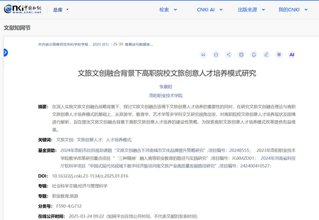 3.张晨阳:文旅文创融合背景下高职院校文旅创意人才培养模式研究