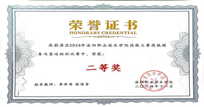 9.2024年李希冉、张佳音指导学生获洛阳职业技术学院技能大赛高铁服务与客运组织比赛二等奖