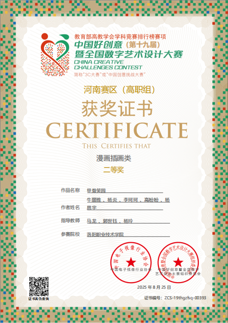 3. 2025年马龙指导学生获第十九届中国好创意暨全国数字艺术设计大赛河南赛区(高职组)二等奖