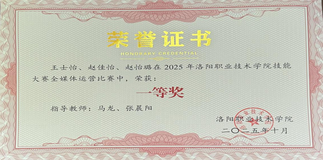 6. 2025年马龙指导学生获洛阳职业技术学院技能大赛全媒体运营比赛一等奖