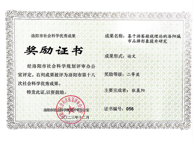 4. 2023年张晨阳获洛阳市社会科学优秀成果二等奖