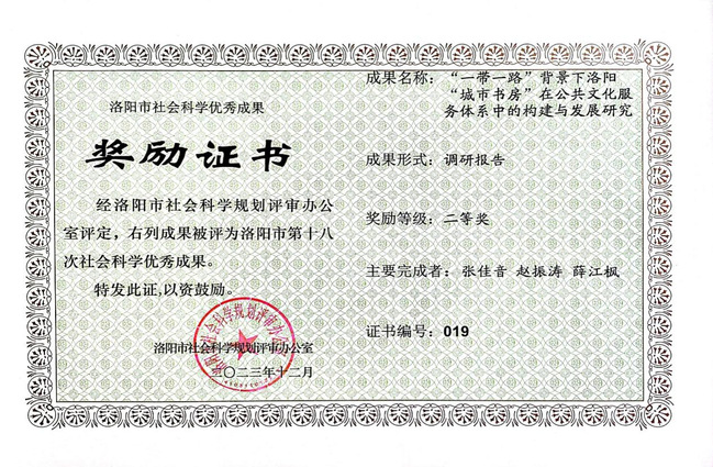 5. 2023年张佳音获获洛阳市社会科学优秀成果二等奖