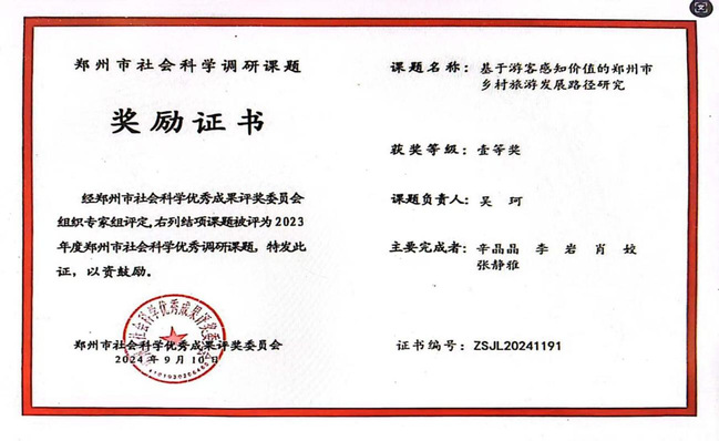 2. 2024年辛晶晶获郑州市社科调研成果一等奖