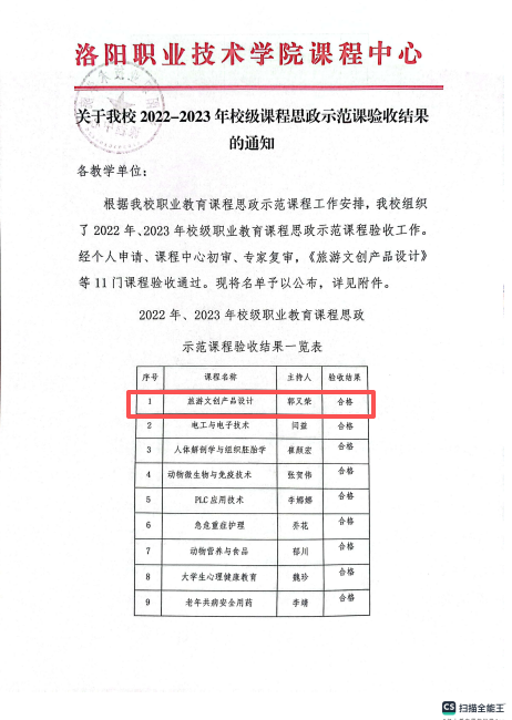 9. 2023年郭又荣《旅游文创产品设计》校级精品在线开放课程验收通过