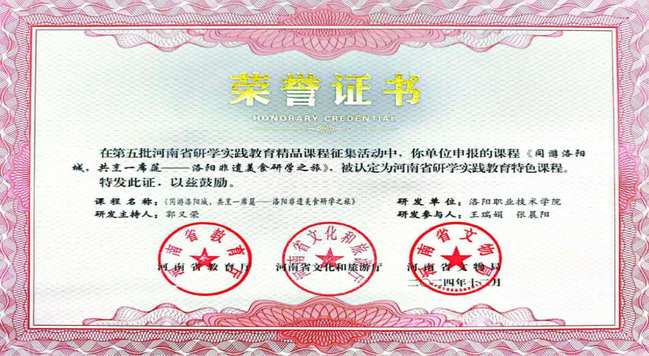 4.2024年郭又荣、张晨阳《同游洛阳城,共烹一席筵——洛阳非遗美食研学之旅》获批河南省研学实践教育特色课程