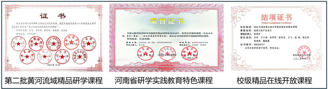 本成果以课程建设为核心抓手,推动“三种精神”培育落地落细,课程建设成果丰硕。项目实施期间,团队成员开发的《同游洛阳城,共烹一席筵——洛阳非遗美食研学之旅》获批河南省教育厅、省文化和旅游厅、省文物局联合认定的省级特色研学课程;主持建成校级课程思政示范课《旅游文创产品设计》《中国饮食文化》,校级精品在线开放课程《宴会设计与组织》,校级一流核心课程《中国饮食文化》,形成了“省级-校级”两级优质课程体系;开发的《你好!大师》《专业导论》等特色课程,已在学校6个专业全面开设,累计授课学生超2000人次,学生课程满意度达98.6%,课程育人效果得到师生的广泛认可。